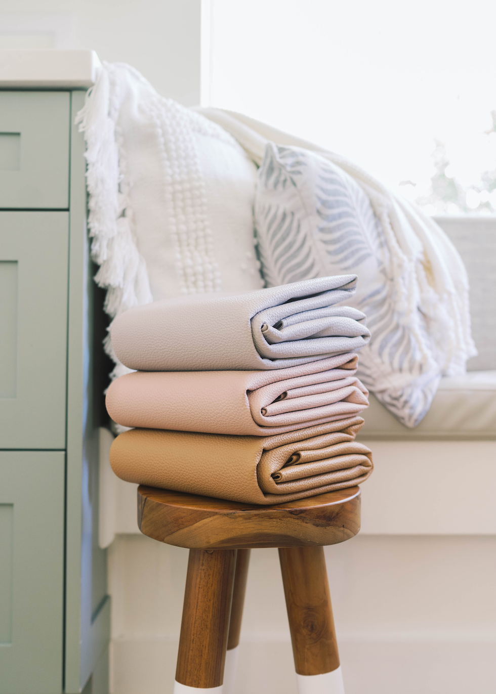 Our double sided premium vegan leather is child safe and free of toxins, PVC, phthalates, and lead.