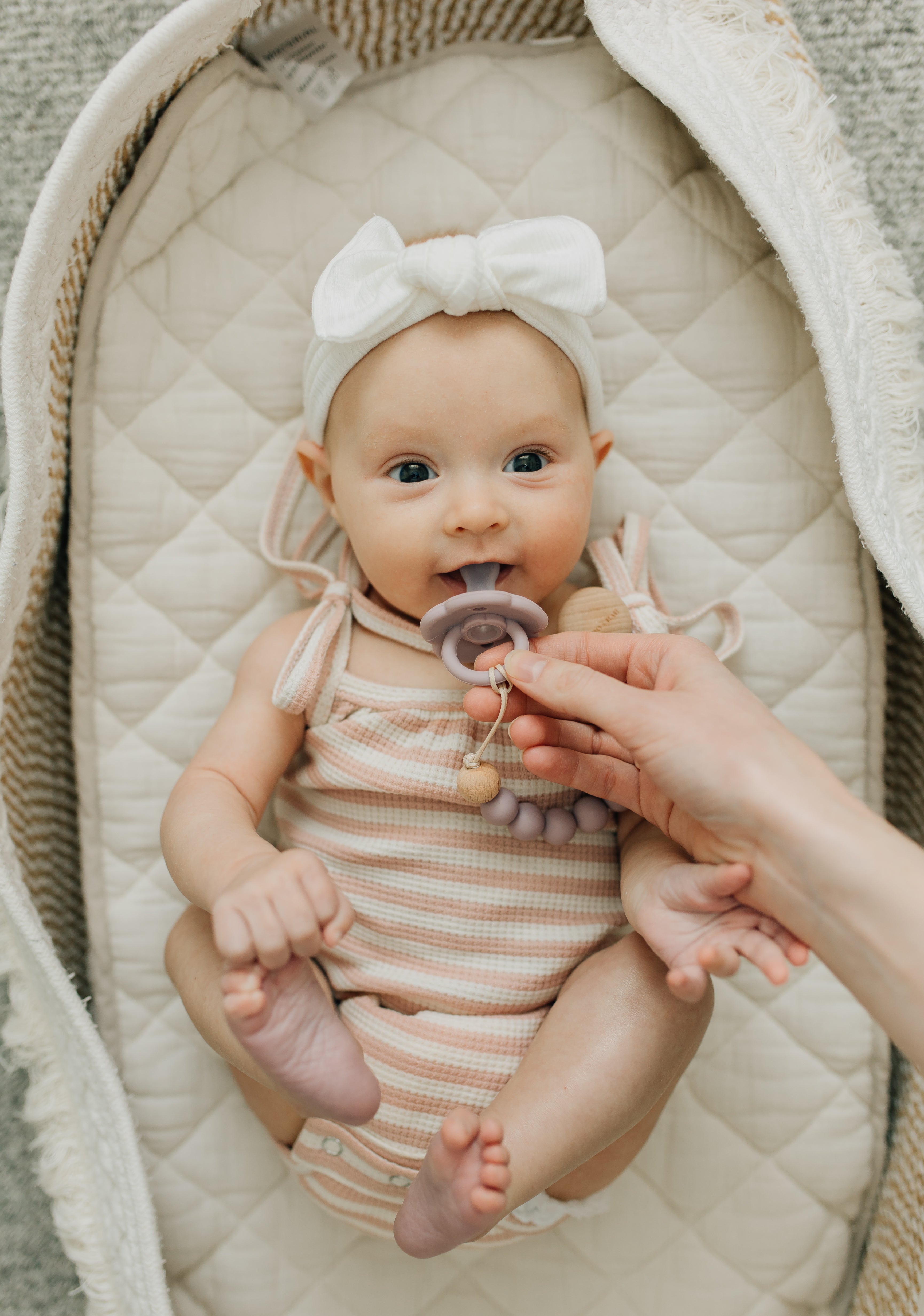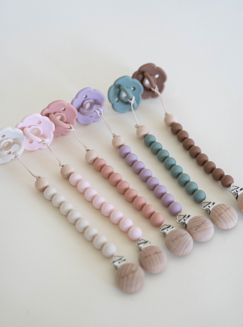 ✔ Compatible with all pacifier brands and attachable to teethers & toys