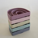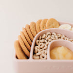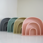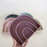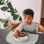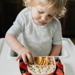 Our Rainbow Plates bring the fun to mealtime and feature a divided design, perfect for separating fruits, veggies, snacks, and more. The innovative suction base securely attaches to any smooth surface, making it challenging for little ones to pull off—ideal for promoting independent eating. As your little one graduates to using utensils, we love to use this plate as a fun snack board.
