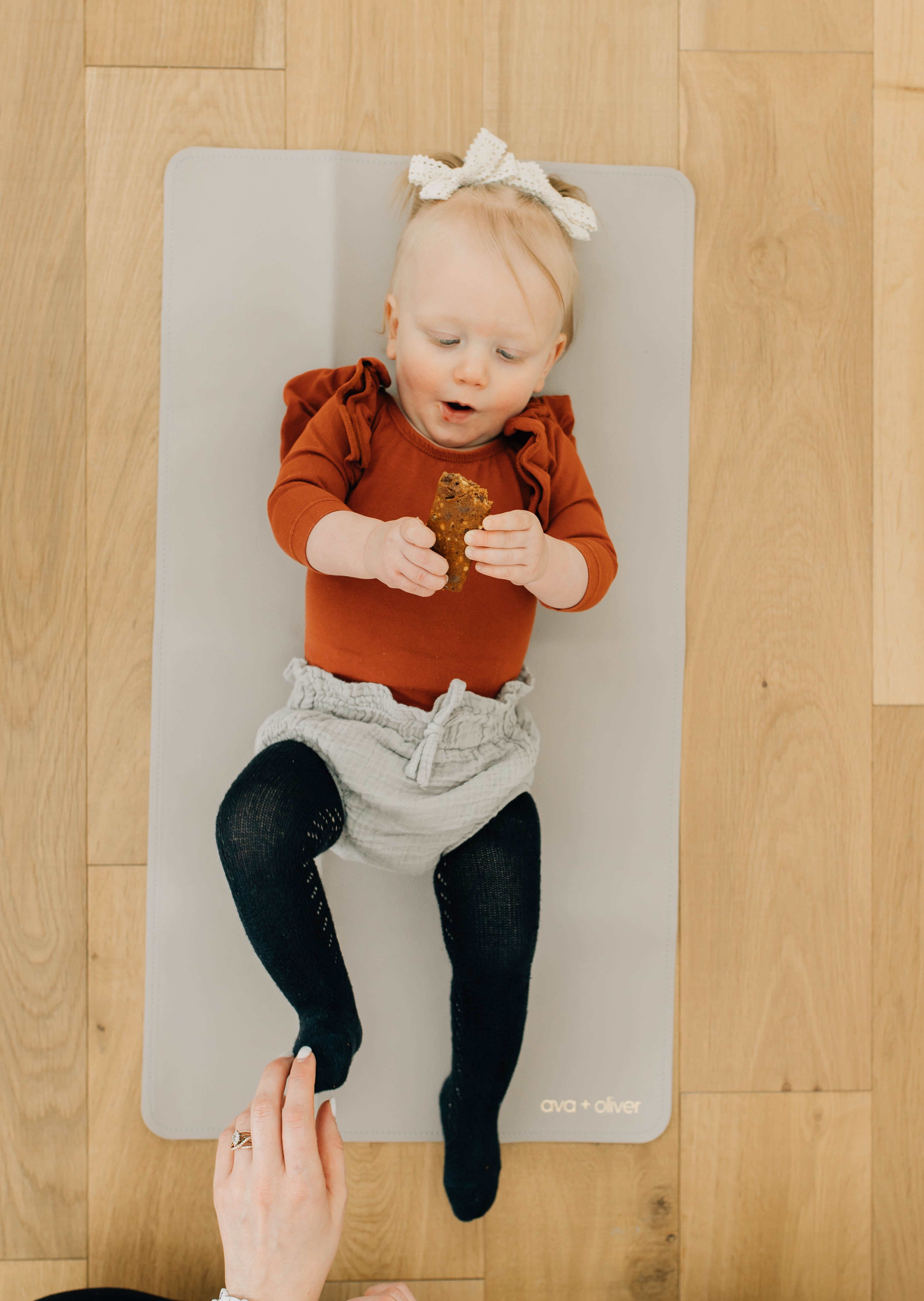 Our mats are wipeable and built tough to withstand even the messiest messes. Our mats come folded for taking on the go.